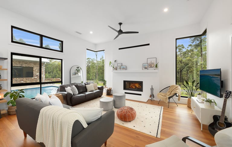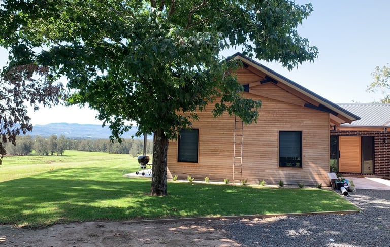 Architectural brilliance comes to life in this stunning home, nestled on expansive acres of meticulously maintained lawns. The exterior showcases the exquisite beauty of hardwood blackbutt timber cladding, adorned with 13 x remarkable 400/kg featured blackbutt power truss's, handcrafted right on-site. Step inside to discover the allure of solid strip blackbutt flooring, leading you towards the grandeur of large stacker doors and soaring high ceilings that invite natural light to dance throughout the living spaces. The heart of this abode boasts a luxurious gourmet galley kitchen, complete with a butler's pantry, offering a haven for culinary enthusiasts. Every aspect of this home has been thoughtfully designed to capture the essence of elegance and sophistication, making it an extraordinary retreat for those seeking a harmonious blend of modern comfort and timeless style.